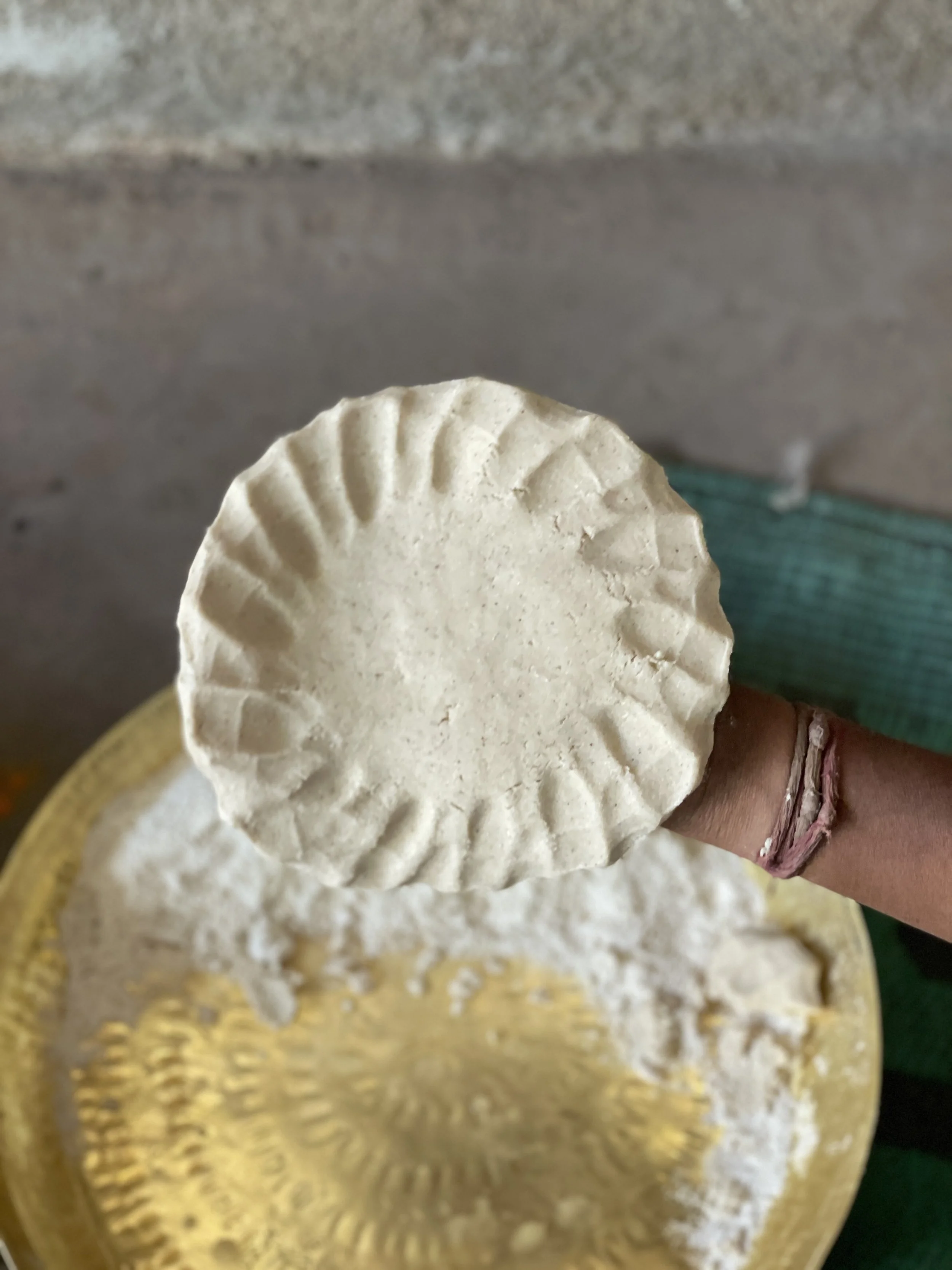 Next up is Gunda Mor ni Kadhi (curry made with Indian Glue Berry blossoms). It’s being cooked in a place about 40 minutes away. We rush there. We’re greeted with a warm welcome and are offered tea, to which we can’t say no. We savour the cup.